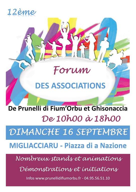 Comme chaque année, la commune de Prunelli-di-Fium’Orbu, en partenariat avec celle de Ghisonaccia, organise une manifestation de grande envergure en mettant en commun leurs moyens matériels et humains. Très attendu, par la population qui se déplace toujours nombreuse, ce Forum permet aux associations de se faire connaître et de présenter leurs activités. Il constitue également une vitrine importante pour mettre en valeur la dynamique de notre tissu associatif local et le formidable investissement de ses bénévoles