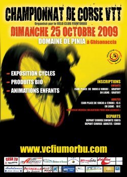 Le Vélo Club du Fium'Orbu organise le 25 octobre prochain, dans le domaine de Pinia, la 2ème édition des Championnats de Corse de VTT. Tous les renseignement sur le site du VCF : www.vcfiumorbu.com Réduction de 5€ pour les inscriptions en ligne