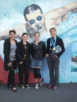 Les Championnats Régionaux se sont déroulés les 17 et 18 avril 2010 à la piscine de la Carbonite de Bastia. Quatre nageuses du Club étaient engagées, chacune sur deux épreuves différentes. Une arrivée tardive le dimanche matin nous a privée d’échauffement et 15 minutes après le début de la compétition, il fallait être d’attaque pour défendre ses chances sur le 50 NL. Nicole entre en lice dans la 2ème série et éprouve quelques difficultés à se mettre en action sur une distance si courte, sans échauffement. Un peu déçue par son temps, elle réalise tout de même le minima qualificatif pour Göteborg en août prochain. Mathilde et Axelle suivent dans la 3ème série et améliorent toutes deux leurs temps sur la distance. Une course régulière pour Mathilde alors qu’Axelle, après un départ très lent, se réveille pour terminer en force. Plus tard dans la matinée, c’est au tour de Karine de défendre ses chances sur le 200 Brasse. Elle sait que Jessica FERNANDES est plus rapide qu’elle sur la distance et que les modifications techniques de sa nage et le travail foncier que nous fournissons en ce moment ne permettront pas une performance. Elle se classe cependant 2ème. La pause repas se passe à la « cafète » pour un agréable déjeuner au soleil. Retour à la piscine, à l’heure cette fois, avec un échauffement bienvenu. Nicole débute dans la 1ère série du 200 4N et réalise son meilleur temps dans une course bien mieux nagée que le matin. Elle réalise encore le temps de qualification pour Göteborg. Karine, se trouve dans la dernière série de ce 200 4N. Malgré un départ trop lent en papillon et en dos, elle se ressaisit pour terminer très fort en brasse et crawl. Elle décroche le titre sur la distance. Enfin une médaille d’or, après toutes ses 2èmes place. Pour clore la journée, Axelle et Mathilde se retrouve dans la 2ème série du 100 NL. Encore un départ un peu lent pour Axelle, mais toutes deux réalisent leur meilleur temps avec une très belle progression pour Mathilde. Rendez-vous en juin pour la 5ème et dernière étape de la Coupe Corse. RESULTATS : 50 NL : Mathilde DOUVILLE - 37.09 Axelle COILLARD - 38.59 Nicole CAGNOLI – 39.93 200 Brasse : Karine RICCARDI – 3:04.22 200 4N : Karine RICCARDI – 2:42.52 Nicole CAGNOLI – 3:31.44 100 NL : Mathilde DOUVILLE – 1:22.98 Axelle COILLARD – 1:25.48