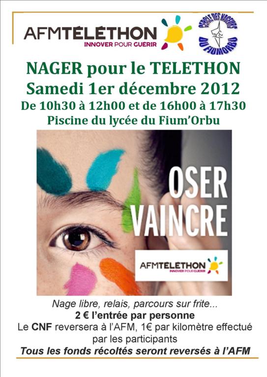 Venez nager pour aider le Téléthon 2012. Nage libre, relais, parcours sur frite...